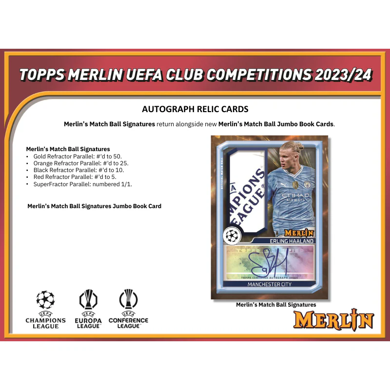 - Merlin’s Match Ball Signatures return alongside new Merlin’s Match Ball Jumbo Book Cards.